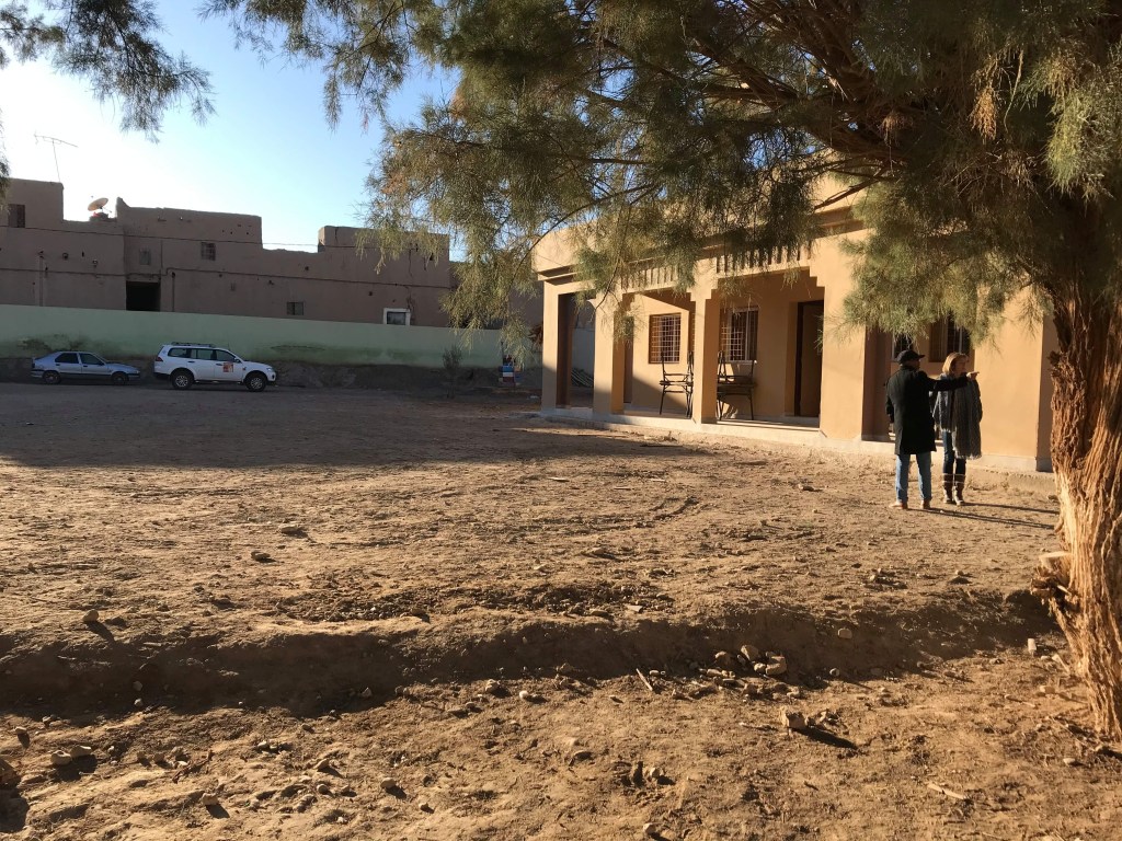 Plus tard, Laetitia nous a annoncé la localisation de notre école après avoir été sur le terrain et surprise en voyant qu’il s’agissait de la ville de Rissani, ville par laquelle je suis passée plusieurs fois pendant le 4L Trophy 2018. Je me souviens de cette merveilleuse porte que nous avions franchie.
