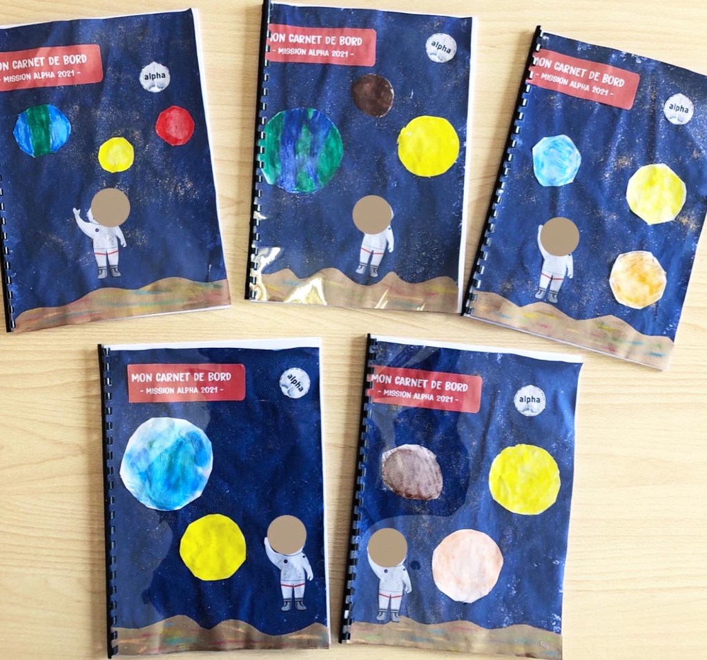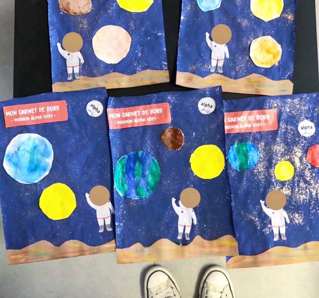 - Il y a ensuite une succession de pages blanches pour qu’ils puissent coller la photo du jour tirĂ©e du compte Instagram de Thomas Pesquet : @thom_astro ; ils dĂ©crivent ce qu’ils voient, Ă©crivent une ou plusieurs phrases sur la photo (une production d’Ă©crit quotidienne).