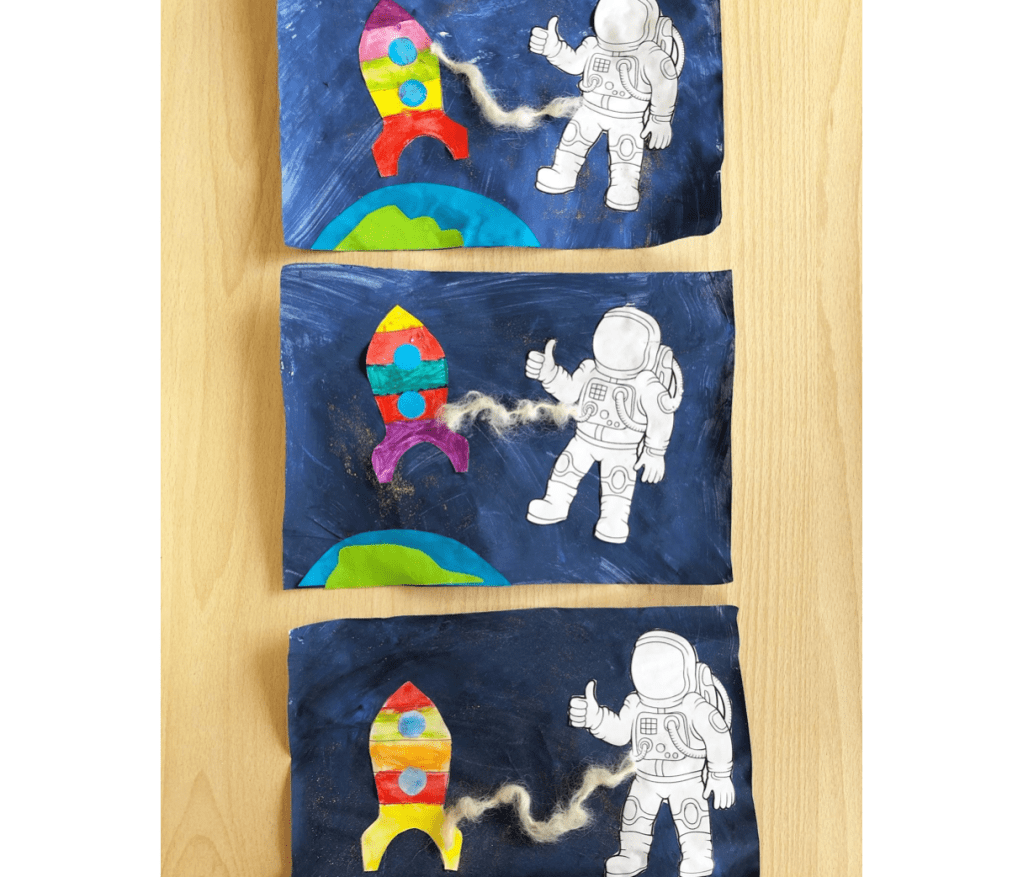 Pour complĂ©ter ce fond, j’ai trouvĂ© une image d’astronaute et j’ai inclus dans l’image leurs visages pour personnaliser la couverture, ils ont A-DO-RĂ !