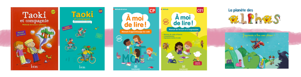En lecture, je suis les méthodes de mes collègues : A moi de lire CP et CE1, « Taoki » et « les alphas » mais aussi « A moi de lire ».