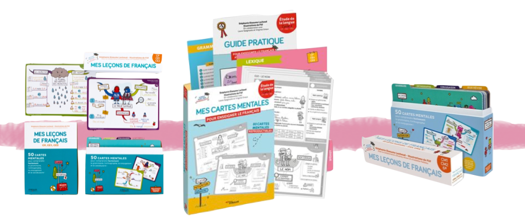 Mes cartes mentales : Un support très très riche … des fiches de préparation clé en main sur le site internet quand on achète les fiches détachables, des jeux proposés. Les leçons proposées sous différentes formes pour satisfaire le plus grand nombre d’élèves, dans la mémorisation de celle-ci. De plus, une fois le classeur acheté vous avez en ligne des séances, séquences clés en main avec des fiches exercices qui sont pour le coup très bien faites souvent elles mettent en avant la manipulation.