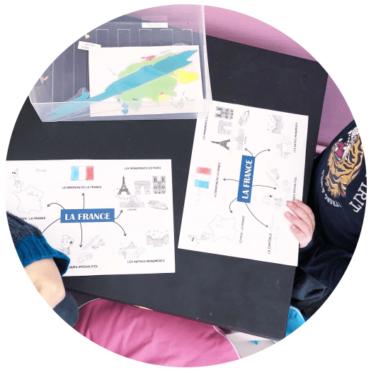Cette année, avec les plus petits je suis partie à la découverte du Monde avec comme supports l’histoire du « Loup qui voulait faire le tour du Monde ». Je leur ai proposé comme supports de mémorisation et de lexique des cartes mentales.